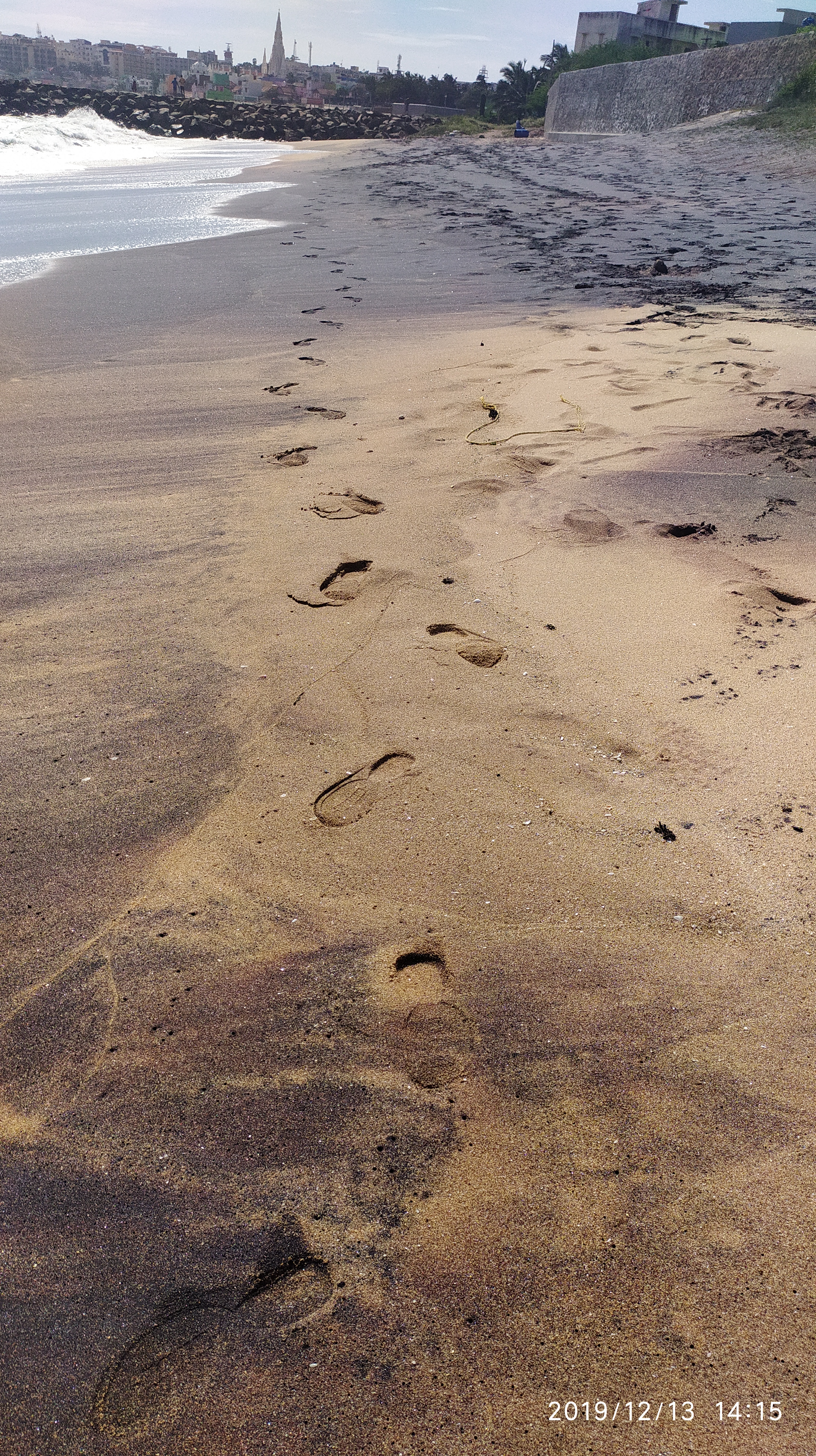 Kanyakumari Beach It was the nearest one to the church. Walk, sit, relax, feel the waves and breeze —- Repeat —- Walk #