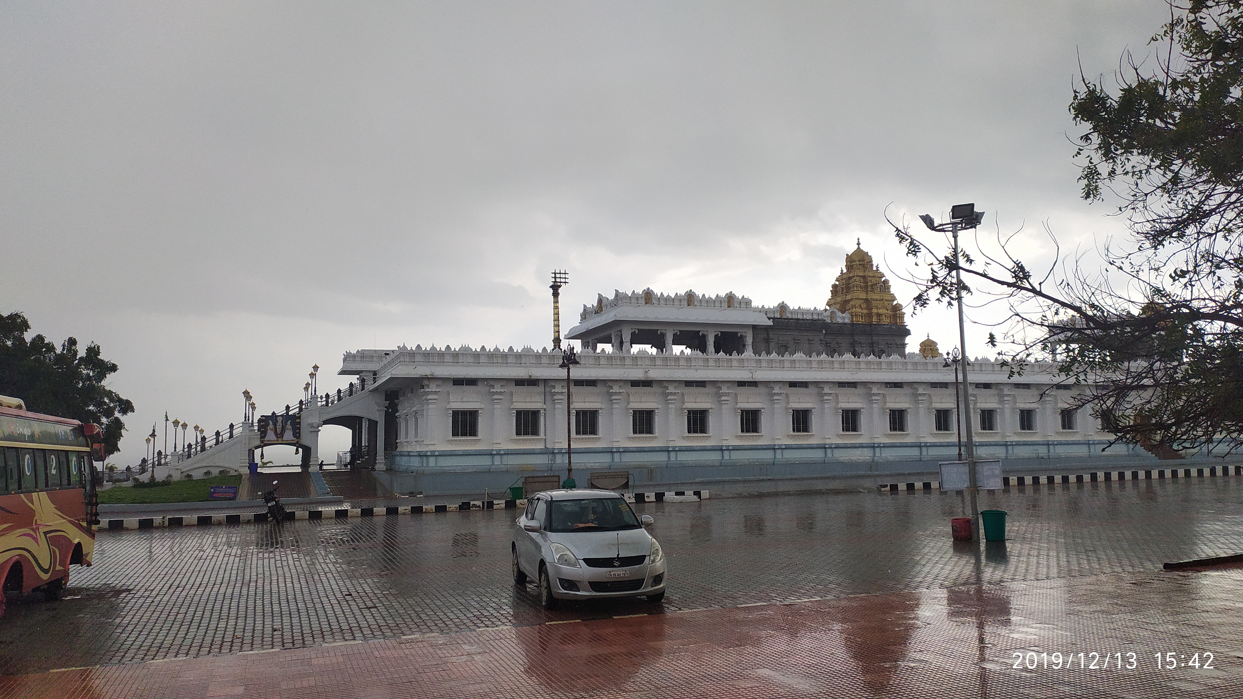 Tirupathi Venkateshwar Temple 03:42 pm After taking some wrong streets I finally reached the temple campus and now something was really turning, the weather. Sky getting darker, I ran and as soon as I reached its restroom it started raining, whooooooooa. I was lucky enough that when I was walking the sky was clear and there was no rain. I thanked clouds for not raining when I was on the shore because there was no place to hide and also I wasn’t having any umbrella or rain suit. It rained for a while and clouds were now gone like they did nothing. The sky was all blue again, all cool wind blowing. so, it was a pure moment to thank the lord and nature for being such kind to me 🥰😘.The swift desire in that picture proved to be a lifeline later on 😇.
