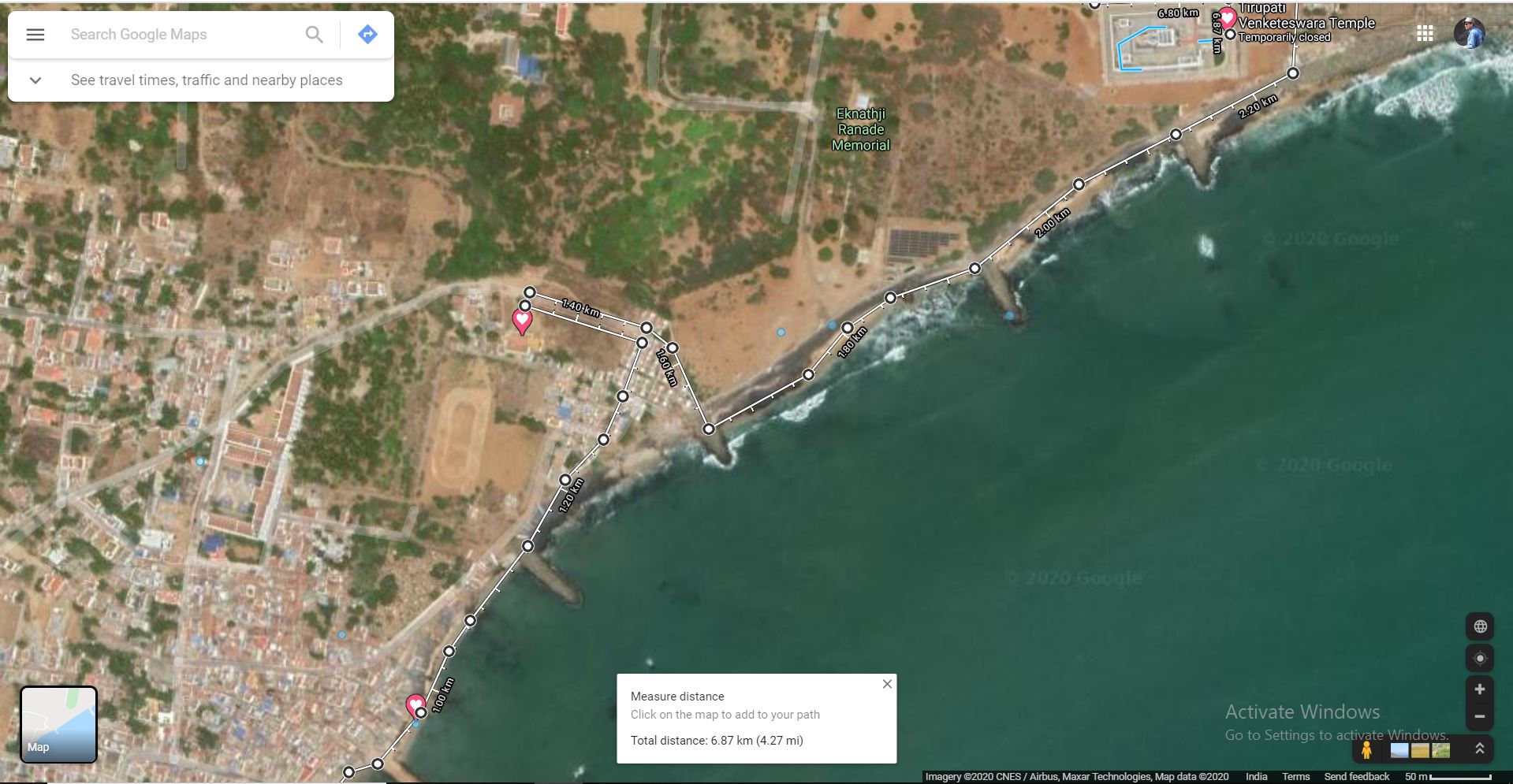 I walked🚶👣👣, I followed the waves and reached a place which was an approx center, from here to right it was sunset point and to left the visible thing was Tirupathi Venkateshwar Temple. So the plan was simple first walk to the temple and to return back to sunset point in the evening 😅.